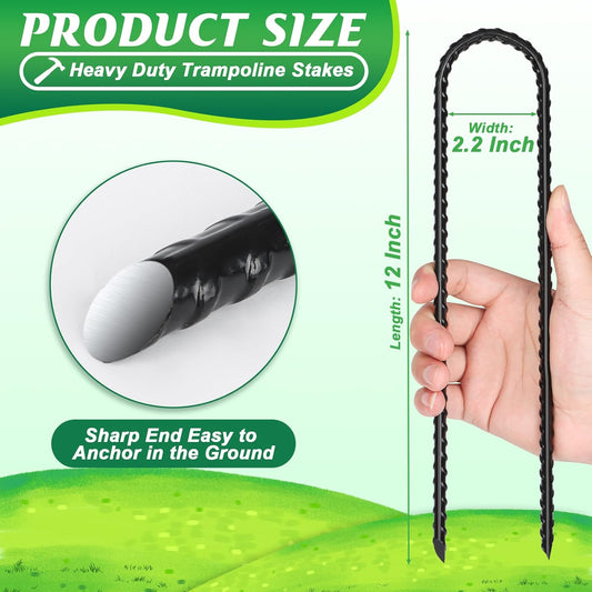 Trampolines Wind Stakes 12 Pack 12 Inch, Heavy Duty U Shaped Rebar Stake Ground Anchors Galvanized Steel Safety Trampolines Stakes for Camping Tents, Soccer Goals and Huge Garden Decoration